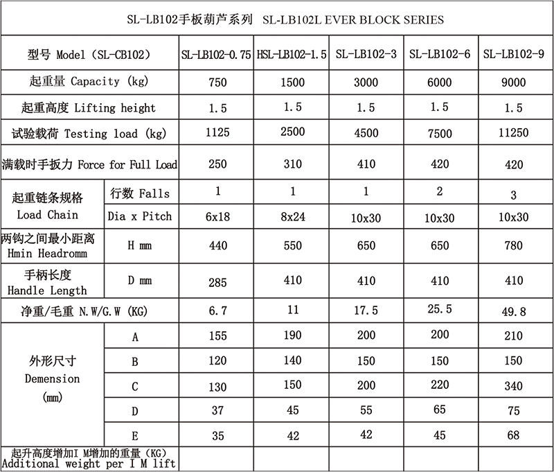 SL-LB102手扳葫芦系列